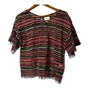 Maeve by Anthropologie Naples Embroidered Mesh Blouse size L. Pre owned good condition