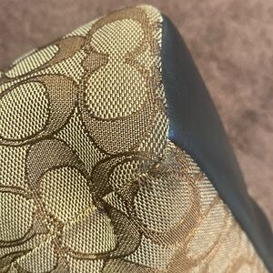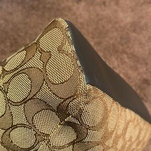 Used. Still in pretty ok condition. Has the coach tag, has no pockets, strap is not removable only adjustible. Has handles. Zipper zips. Please see video inside there is a stain from usage.