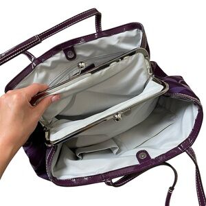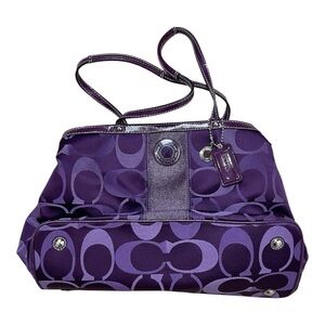 Vintage Coach Signature Dark Plum Purple Stripe Carryall Tote Shoulder-Bag Purse