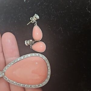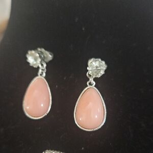 This exquisite Avon necklace showcases a delicate teardrop-shaped pink stone set in polished silver, accented with sparkling details. The harmonious blend of soft pink hues and bright metallic finish creates an elegant and romantic aesthetic, perfect for any occasion. This pendant/ earring set is prettier in person with signs of minimal wear.