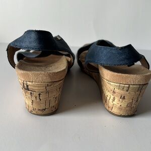 Life Stride Flex Soft System Sandals 7.5 M Denim blue suede 2.5” wedge heel