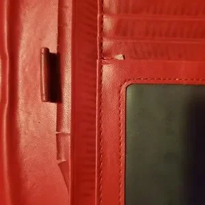 SOME PEELING/RED VINYL LIFTING DUE TO NON USE IN CLOSET