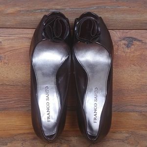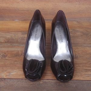 Franco Sarto Brown Patent Leather Heels with Rosette Detail