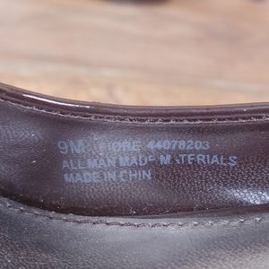 These sophisticated brown heels by Franco Sarto feature a glossy patent leather finish and a charming rosette detail on the toe. With a medium-height heel, they offer both style and comfort, making them ideal for professional and formal occasions.