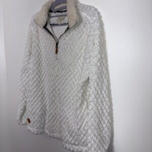 Simply Southern Women's 1/4 Zip Sherpa Quilted Diamond White Soft Size M EUC