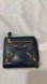 Chic navy blue compact wallet by Balenciaga. Features gold hardware and sleek design.