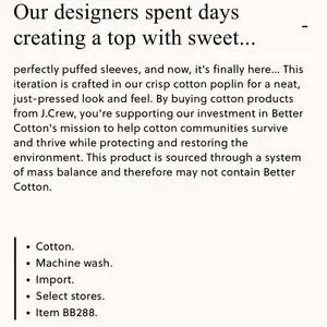 J. Crew puff sleeve cotton poplin top. Size XS. Excellent condition. Just the right amount of ruffle detail and puff shoulder. Easy popover style.