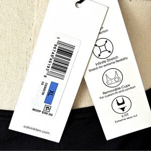 Calvin Klein asymmetrical one-piece swimsuit with one-shoulder double straps.