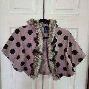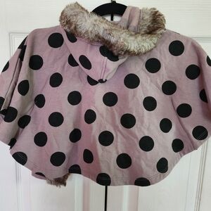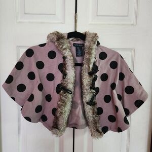 Cynthia Rowley Pink Polka Dot Cape with Faux Fur Trim