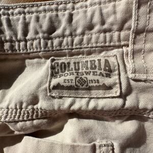 COLUMBIA x Mens Tan Flat Front Outdoor Chino Shorts Size 40W l Measurements approximate and on flat surface: Waist: 40", Inseam: 10", Length: 22".