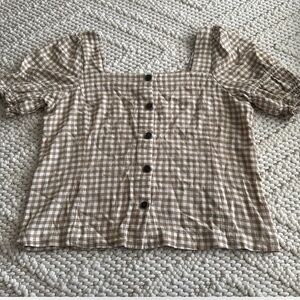 Super cute and trendy Madewell Gingham Jacquard Square Neck Puff Sleeve Top size small