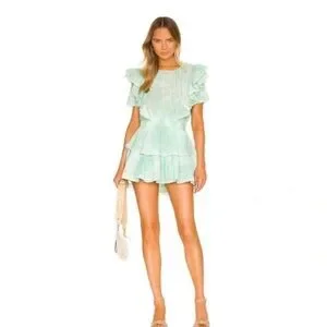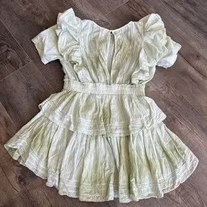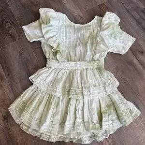 LoveShackFancy Green Flutter Sleeve Mini Dress