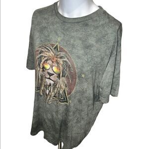 Adorable shirt. It’s a dark green and features a Rasta Lion DJ. NWOT and size XL. 25% cotton 15% rayon 50% polyester