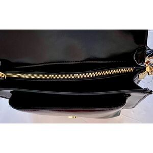 This Rachel Zoe black shoulder crossbody bag offers a structured design with a polished finish, making it a timeless accessory for any occasion. The adjustable shoulder strap and gold-tone hardware add a touch of elegance to its classic style. Includes bag hook. New with tags. 10”x7”