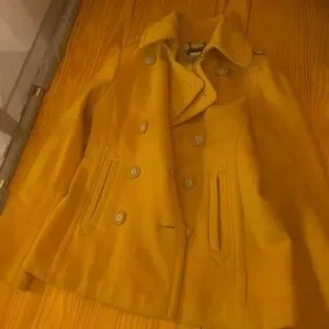 This vibrant yellow peacoat from J. Crew is crafted in a classic design with a wide notched lapel collar. Made from a wool blend, it offers both warmth and style, making it a standout piece in any wardrobe.