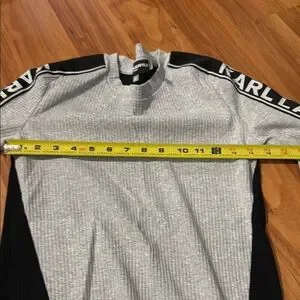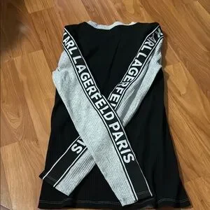Karl Lagerfeld Black and Gray Long Sleeve Top