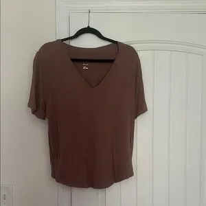 This brown t-shirt from A New Day showcases a relaxed fit with a classic V-neckline and short sleeves. Crafted from a soft, lightweight fabric, it offers a comfortable and versatile style perfect for everyday wear.