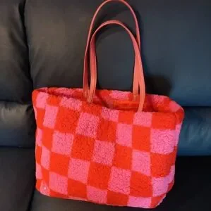 Elevate your style with this chic pink and red checkered tote bag. Perfect for any occasion, this bag combines fashion and functionality.