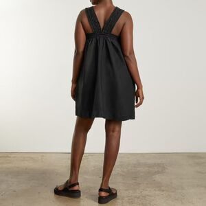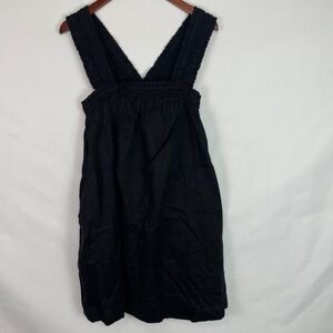 Everlane The Smocked Linen Criss Crossed Straps A Line Mini Dress Black S