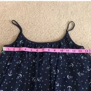 Stylish navy blue top with a charming anchor print. Perfect for casual outings. Lightweight and comfortable for all-day wear.