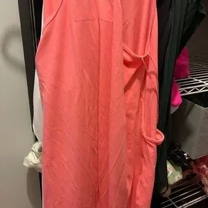 Elevate your style with this vibrant coral sleeveless jumpsuit. Perfect for any occasion, it offers comfort and a chic look.