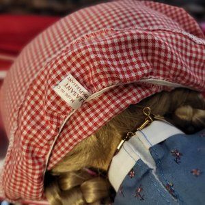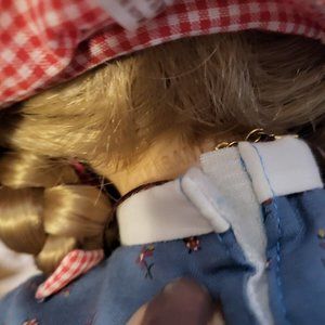 In some new photos I just added, she has a necklace. it's been there the whole time, I just found it hiding under her hat when I was doing a video. She also has two hankies! She came with two for some reason instead of the usual one. :)