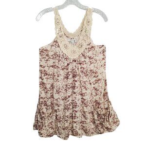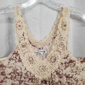 Forever 21 Size M Dress Lace Trim Tank Floral Swing Beachy Country Cottage Flirty