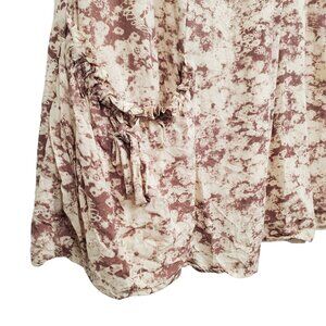• Patterned with beige and brown abstract floral print