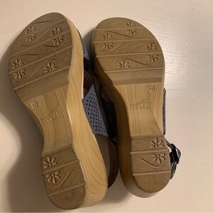 Dansko Blue Wedge Sandals with Cross-Strap Design