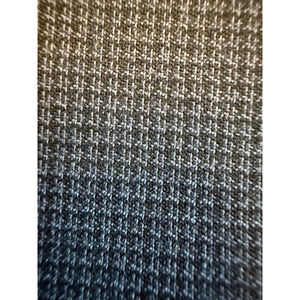 These are pre-owned, good condition Banana Republic Martin Fit pants, size 4 Petite. The lightweight material is a blend of 79% polyester, 18% viscose, and 3% spandex. The pants feature a gray, black and white houndstooth pattern, a zip fly with a hook-and-eye closure, and front and back pockets. The inseam measures approximately 28 inches.