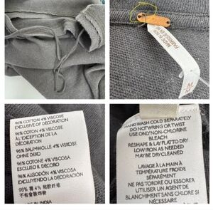 Free People Fringe Top Slouchy Ombre Tassel Short Sleeve Washed Black Gray New