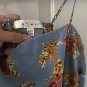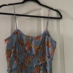 Double lined dress with adjustable straps flattering rouching under bust and slit on the side.. good quality bought at Nordstrom’s rack