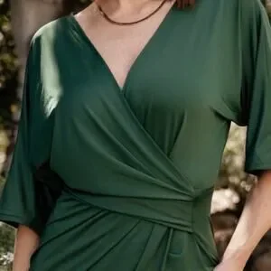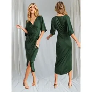 Baltic Born Solana ruched hunter green wrap 3/4 sleeve dress size Medium NWT