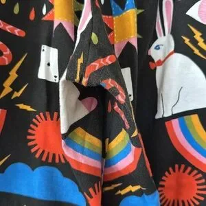 Dynamic pants with a lively magic graphic print joggers by Lisa Congdon. Features bold patterns and vibrant hues. Ideal for a standout look. No rips or stain. Worn a couple of times. A little wear on the crotch area otherwise in great condition. Ask questions before buying. No returns.