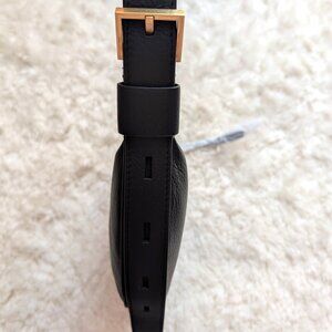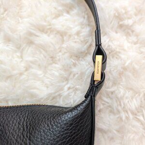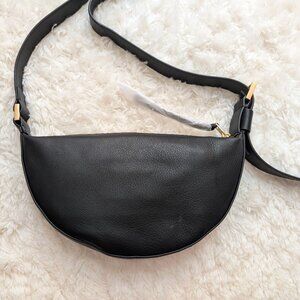 This brand new ALLSAINTS Half Moon Crossbody Bag is in excellent condition with its original dust bag. It's crafted from leather and shaped to a compact crescent silhouette with plenty of space on the inside. Zip closure, adjustable strap, metal hardware, two interior pockets (one zip closure, one for multiple card slots). Body: 100% cow leather. Trim: 100% cow leather. Lining: 100% cotton. Approx. H 6.3", L 11.5", W 1.2". There are two tiny subtle scars on the lower right of the back (see P6), but they are not really noticeable. The imperfections come with the original bag at purchase, never used.