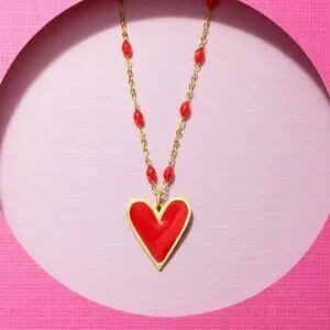 Italian Personalized (Letter "M") Red Enamel Heart Necklace in 14kt Yellow Gold