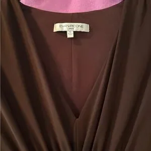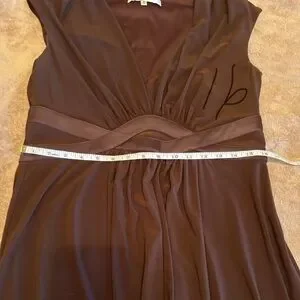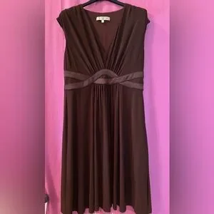 Chic and versatile midi dress. Rich chocolate brown hue. Flattering gathered waist design.