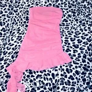 EGO pink Bandeau Ruched Frilly Hem Mini Bodycon Dress XS