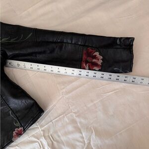 Candie's Black Faux Leather Moto Jacket with Floral Embroidery size L