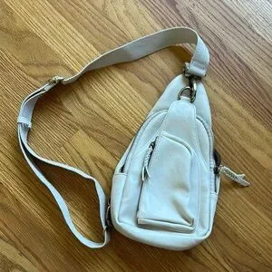 Stylish cream sling bag with adjustable strap. Perfect for casual outings or travel!