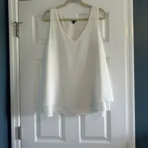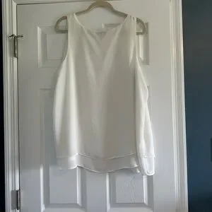 This white Torrid blouse features a relaxed design. The sleeveless cut and flowing fabric offer a comfortable and stylish fit, perfect for any occasion. Torrid size 2.