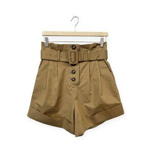 NEW Self-Portrait Camel Canvas Turn Up Shorts Size 4 High Waisted Brown