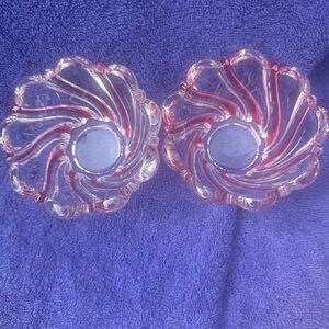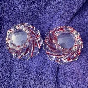 Mikasa Crystal Candle Holders Pair Holiday Classics Red Swirl Tealight