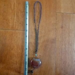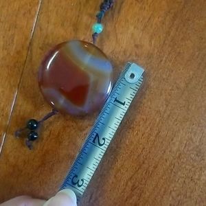 An Argentinean stone pendant on thread woven necklace is adjustable. A beautiful and practical handmade artisan piece. Just the right weight and shape.