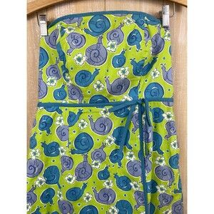 Lilly Pulitzer Strapless Dress Green Blue Snails Print Open Back Sz 8
