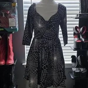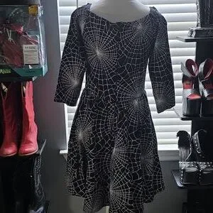 Wicked Swing Dress in Vintage Spiderweb Print - Vixen by Micheline Pitt LARGE