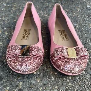 Salvatore Ferragamo Pink Glitter Kids Dress Shoes