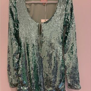 NWT. Sparkling Aqua sequin dress. Long sleeve. Slits at end of sleeves. Ideal for parties