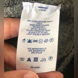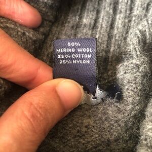 Gently used Land’s End Grey Turtleneck Long Sleeve Sweater in size Medium. This is a Merino Wool / Cotton / Nylon material.