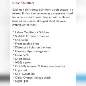 Urban Outfitters Women's X Sublime Distressed With Holes Oversized Tee T-Shirt, Brand New, still sealed in a bag, Size S/M, Orange, MSRP $39, Offers welcome.